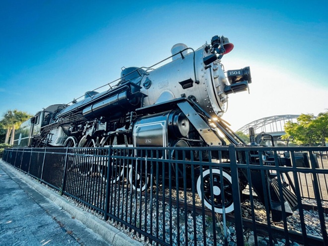 A light Pacific type steam locomotive, No. 1504 was built in 1919 by the Richmond Locomotive Works for the Atlantic Coast Line Railroad. It was placed on public display in Jacksonville in 1960 before being acquired by U.S. Sugar, whose Sugar Express enterprise offers steam excursions in south central Florida.
